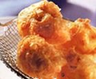 Batter: combine first 5 dry ingredients; then add water, beating vigorously. Or use a blender. Add as much water as you need to get the consistency of pancake batter. Let batter rest for 30 minutes. Vegetables: slice vegetables in 1/4" rounds, or thinly so they will cook easily. Deep Fry: in a wok or deep skillet, heat oil to 350. Dip vegetables into batter and deep fry in batches, 2 minutes, flip, then 2 minutes more, till they become golden brown. Drain on towels. Some cooks recommend “par-frying: deep fry till just golden, cool to room temperature, then deep fry a second time. This gives a crispier crust. You can make the pakora in advance. After the first deep-fry, store them in the refrigerator, or freeze them, then deep-fry the second time before serving. * If you can't find besan, use regular flour. |