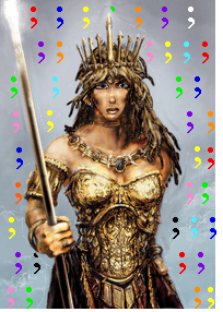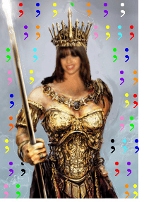 Have faith. With a little guidance, you too can master the SEMICOLON—which means that you can don the costume and bear the title "Semiramis of the Semicolon." (Spear not included.)