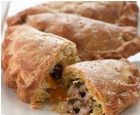 Filling: In a large skillet, heat oil and saute onion and carrot for 5 minutes. Add ground beef and the 6 spices—up to (but not including) broth. Cook, stirring constantly. Once the meat is browned, add broth and bread crumbs. Simmer (uncovered) till liquid is absorbed. Set aside and allow to cool slightly so it's easier to handle. Assembly: Preheat oven to 400. Make little 1/moon pastries by spooning equal amounts of filling onto one side of each pastry circle. Fold circles in-half, pinch edges to close, then brush the tops with the egg. Bake 30 minutes, or until golden. * For a meal-sized pattie, cut 5 large pastry circles instead of 10 smaller ones. Also, add 1/2" cubed potatoes and/or green peas to the filling. |