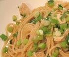Noodles: in large pot, cook noodles till tender. Drain and dunk cooked noodles in cold water for 30 seconds. Drain again. Cover and chill. Sprouts: in another pot, bring water to a boil and submerge bean sprouts for 10 seconds. Remove, plunge in cold water, drain, squeeze out excess water, and chill. Sauce: combine all ingredients for sauce (except peanuts). Mix with cold noodles and spouts. Mound on a platter and garnish with peanuts. Delicious served with cold Hunan Chicken. |