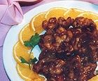 Cut cooked chicken into small chunks. Combine with water chestnuts. In a separate bowl, combine remaining ingredients and pour over chicken, coating evenly. Refrigerate till ready to serve. Arrange chicken on a platter and surround with orange slices. Cold Noodles with Hot Sauce make a good accompaniment. Chili Oil Heat oil in a saucepan over medium heat till it sizzles when a pepper is dropped into it. Remove oil from heat, add chopped peppers with seeds, cover, and let stand 10 minutes. Mix in in cayenne. Cover and let stand at room temperature, 8 hours or over night. Strain into a jar and refrigerate. This is a very hot oil! |