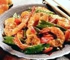 Marinate: combine 5 marinade ingredients in a large bowl, add shrimp, and marinate for 30 minutes. Sauce: in a separate bowl, combine ingredients for seasoning sauce. Set aside. Stir-fry shrimp: remove shrimp from marinade and pat dry. Heat oil in a wok or skillet over high heat for 30 seconds. Add garlic for 30 seconds, stir-frying till golden; then add shrimp and stir-fry for another 30 seconds till pink. Remove and drain shrimp. Set aside. Final stir-fry: add salt and snow peas to oil in wok. Stir-fry for 30 seconds, add seasoning sauce, stir frying until sauce thickens slightly. Return cooked shrimp to wok, coating with sauce, and serve hot with rice. * Oyster sauce gives this dish its distinctive flavor. Don't skip it. ** Reduce vegetable oil for cooking if you want, but have extra chicken broth on hand if sauce becomes too thick. |