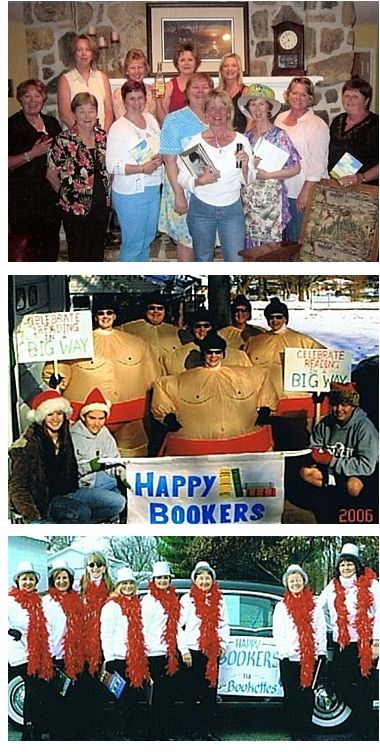 MEET THIS ROWDY bunch of readers—a group from a small town near the capital of MO. They've read, partied, and paraded together for 15 years, all beneath the banner of "Happy Bookers"!