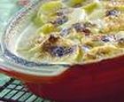 Preheat oven to 325. Rub garlic cloves around the bottom and sides of a 9 x 12 baking pan. Then lightly butter the pan. In a large bowl, toss the potatoes with seasonings. Layer potatoes in the baking pan, leaving at least 1/2" at the top. Cover with cream and dot with butter. Bake 1 1/2 -2 hours till top is bubbly and golden brown. Serve immediately. * This recipe calls specifically for the waxy-type of potatoes rather than the grainier baking type. ** You can also use half-&-half instead of cream to trim calories. |