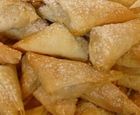 Filling: mix cheeses together, and blend in eggs. Filo Dough: place 1 filo sheet horizontally on a counter and brush lightly with melted butter. Place a second sheet on top and brush it. With the two sheets stacked together, use a sharp knife to cut them the short way, into 5 strips (2 1/2 or 2 3/4" wide). Be sure to cover the remaining dough with plastic wrap or slightly damp towel to keep it from drying out. Assembly: Now you're going to fold a flag—remember from Scouts? First, though, preheat oven to 350. Now for the flag: place 1 tsp. filling on a strip, 1" from bottom. Fold bottom right-hand corner diagonally, to meet left-hand edge, making a triangle. Then fold straight upward, against the triangle’s top horizontal edge. Fold diagonally again. This time fold the lower-left corner to meet right edge. Then fold straight up, again, and so on—just like a flag. Use a drop of water on your finger to paste down the final flap.* Place filled triangle on a greased cookie sheet and brush with butter. Make all 30 spanikopitas, place in oven and bake for 20-25 minutes till golden. Serve warm. * At this point, you can freeze the triangles. When you’re ready to cook, brush them with the butter and place them, still frozen, into the oven for about 40-45 minutes, till golden. |