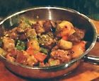 Greek Side Vegetable Casserole The perfect complement to our Leg of Lamb—a medley of vegetables, seasoned with dill, garlic, and cheesy breadcrumbs. 3 med. eggplants (lg. chunks) Sprinkle salt on eggplant chunks and let stand in colander for 1 hour. Rinse and pat dry. Preheat oven to 350. Sauté onion till tender, add garlic, and cook for 2 more minutes. In a large bowl, combine eggplant, onion-garlic mixture, potatoes, and zucchini. Add herbs, chicken stock, and seasonings. Turn out into a large, greased casserole. Cover with foil and bake. After 40 minutes, combine half of breadcrumbs and half of the Parmesan cheese. Stir this mixture, along with tomato chunks, into eggplant casserole. Sprinkle top with remaining breadcrumbs and Parmesan. Bake, uncovered, 20 minutes longer. Wonderful served with Roast Leg of Lamb. |