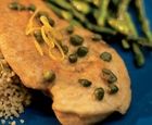 Chicken: slice chicken breasts in half lengthwise. Or if you're in possession of a good sharp knife, slice the breasts edge-to-edge (like cutting a deck of cards) to make two thin pieces. Place each half (however you cut slice them) between 2 sheets of waxed paper and pound to 1/4" thickness (use a mallet, or heavy chef’s knife blade). Set aside. Coating: combine flour with next 4 ingredients, plus 2 tsp. lemon zest. Coat flattened chicken breasts with the flour mixture. Set pieces on a flat baking sheet and let them rest for 30 minutes before cooking. This helps seasoned flour to adhere. Saute: use a heavy skillet to heat oil and butter until very hot (careful not to burn). Add chicken pieces, batch at a time, and brown 3-5 minutes a side (till chicken is cooked but still tender). Add more oil if you need it. Remove, arrange on a platter, and keep warm. Sauce: next, add garlic to skillet and cook 2 minutes (careful not to brown). Then add lemon juice, wine, and capers, stirring and scraping up meat fond from bottom of the pan. Boil down a few minutes, always stirring, to thicken slightly, and pour over chicken. Garnish with parsley and serve immediately. |