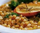 Beans: Soak beans overnight. Or use quick soak method: bring beans to boil in 6 qt. water; boil 1 minute, turn off heat, and let beans sit 1 hour. Drain and use in the recipe. Soup: in a large pot, heat oil, add next 4 ingredients and saute till tender. Add garlic and saute for 2 more minutes. Stir in chicken broth, ham hocks, and soaked beans. Make a bouquet garni by using a cheesecloth square and tying together the bay leaves, parsley, thyme, rosemary, and pepper flakes; submerge in the broth. Simmer gently, over low heat, for 2 hours. Thickening: after 2 hours, remove ham hocks and set aside to cool. Discard bouquet garni. Puree half the mixture in a blender or food processor and return it to pot. When cool enough to handle, shred ham from hocks and add to the soup. Add salt & pepper to taste. Bread: while soup is simmering, lightly oil bread slices and toast in a 375 oven till golden brown. When soup is ready, place 2 pieces of toast in bottom of each individual soup bowl, cover toast with 2 T Parmesan cheese, ladle soup over bread slices, and serve. * Traditionally this soup calls for cannelli beans, but navy or great northern beans work well and can be easier to find. You can use canned cannelli beans, but they tend to be mushy. If you use them, drain and add to the soup during the last 30 minutes of cooking time. |
